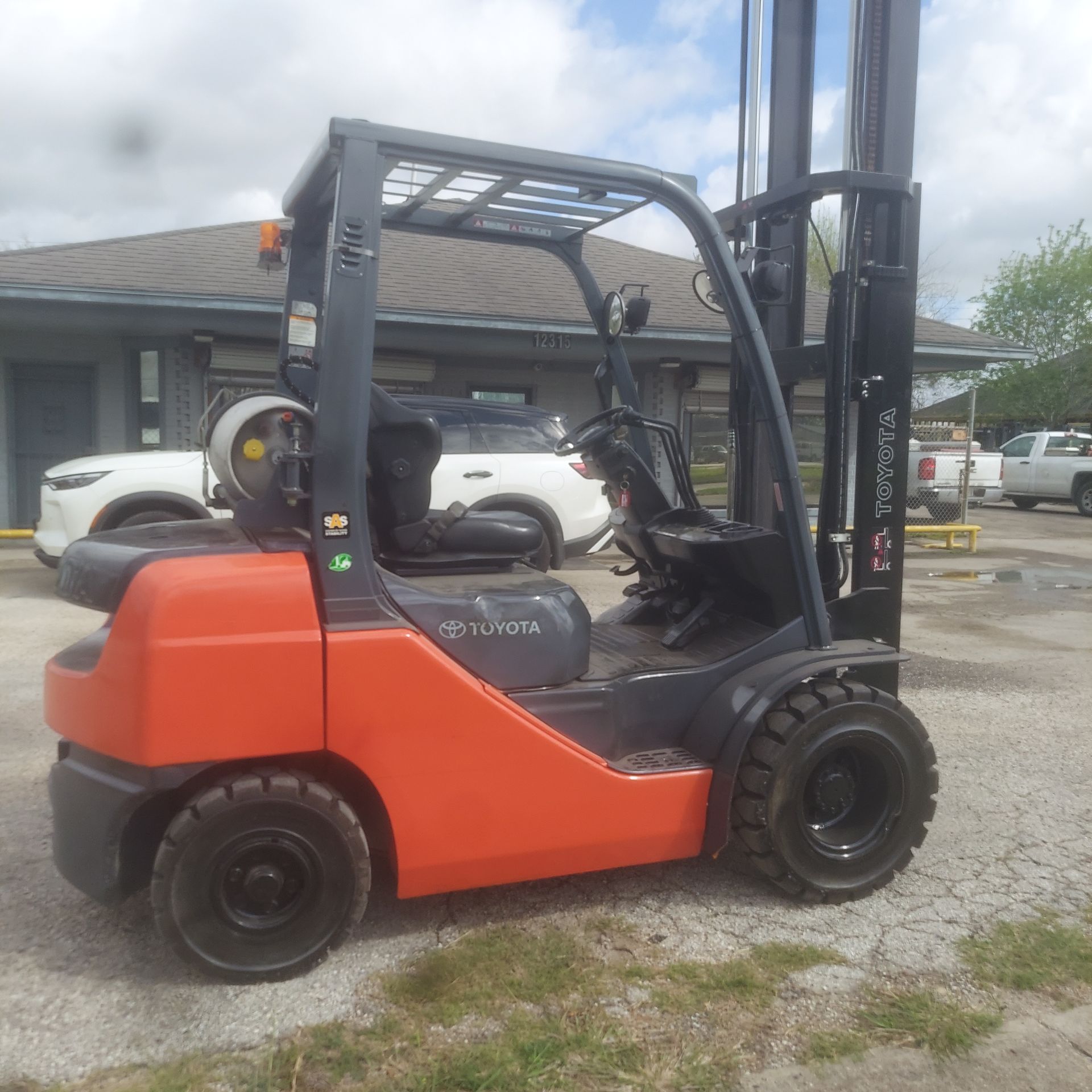 NICE TOYOTA FORKLIFT, MODEL#8FGU25, DUEL FUEL, FORKS, THREE STAGE MAST,