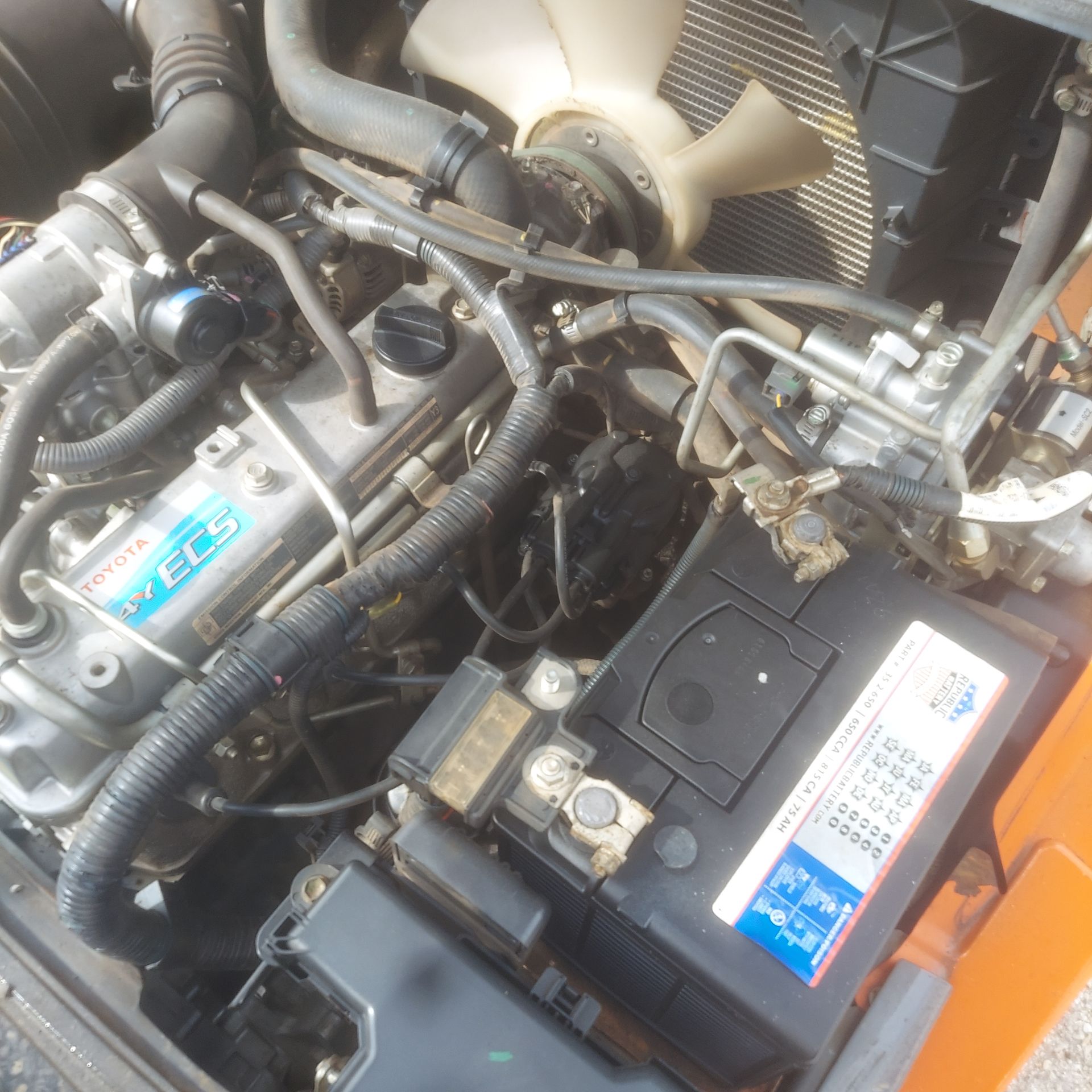 Pre-Emission Diesel, with Solid Pneumatic tire - tires 95% life, Triple stage mast with new side shifter, 4 cylinder pre- emission diesel, new 42” forks, new battery, water pump, and radiator, recently serviced. This is a turnkey truck. No error codes - no check engine light on. Low hour unit with only 2365 hrs. Ready to work!